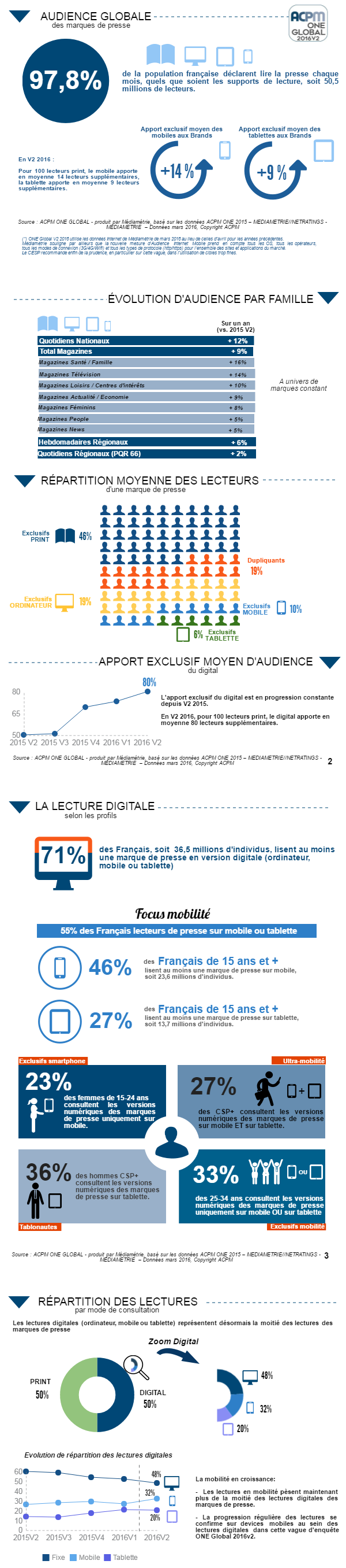 Infographie One Global V2 2016 : la lecture des marques de presse se fait en mobilité